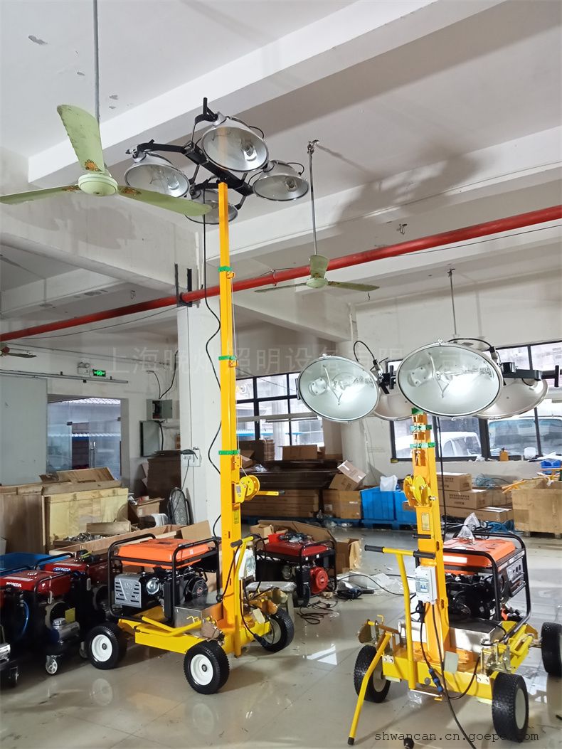 ◎灯盘采用四节伸缩手摇杆作为升降调节方式,*大升起高度为4.5/6米;上下转动灯头可调 节光束照射角度,灯光覆盖半径达到200米o